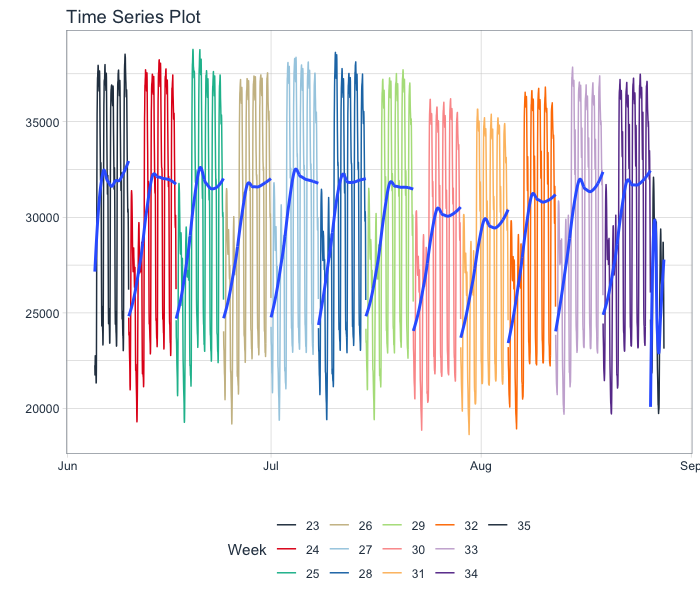 plot_time_series(date, value, .color_var = week(date),